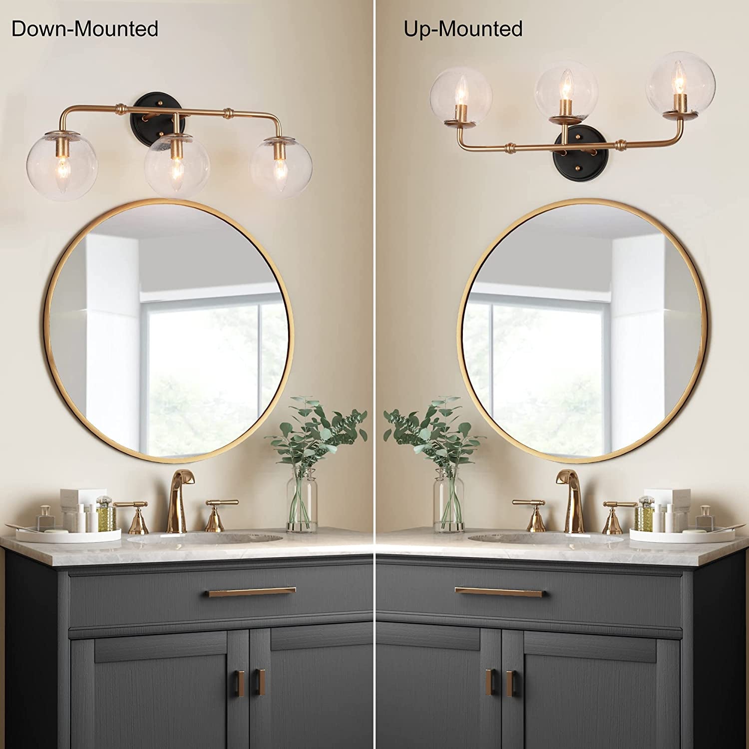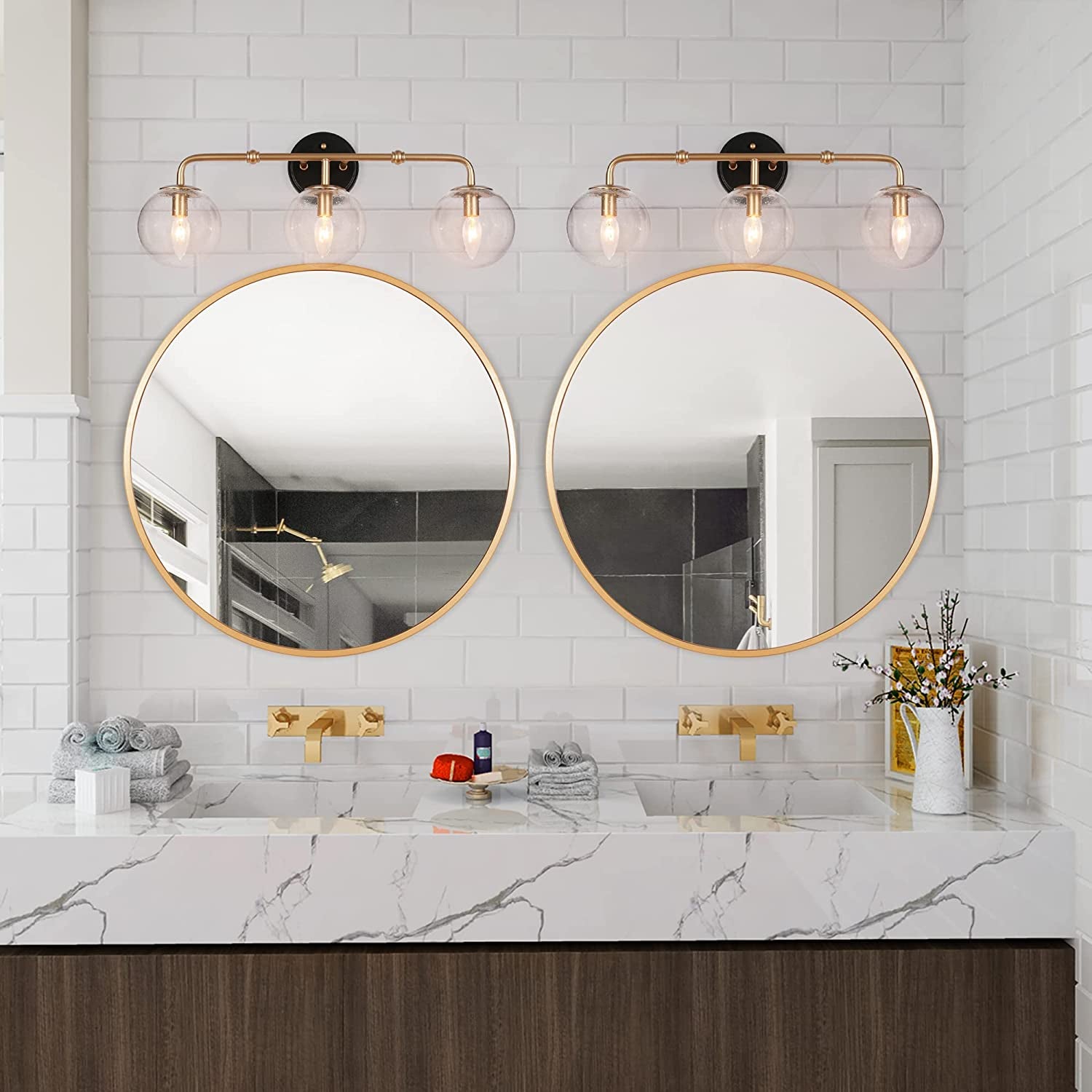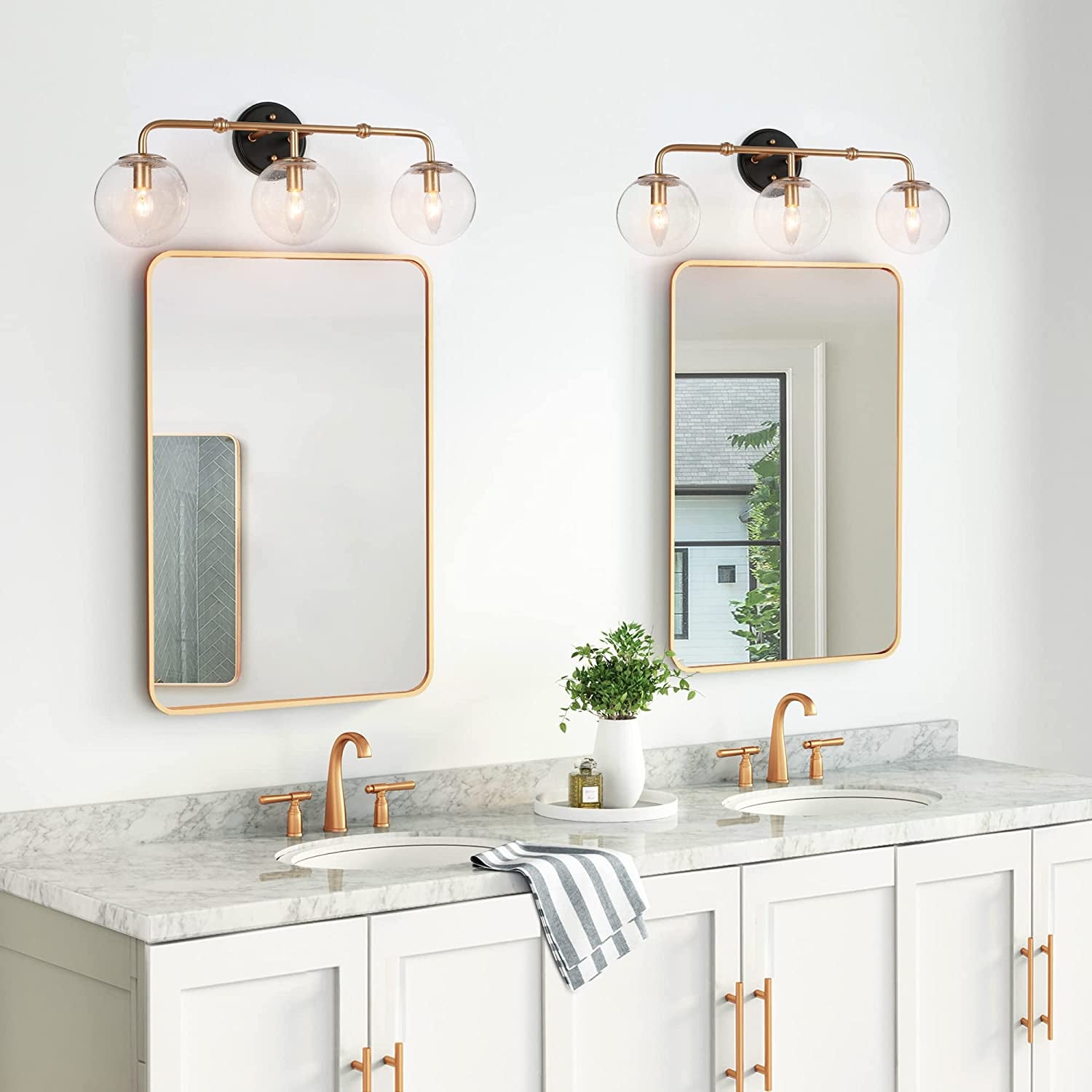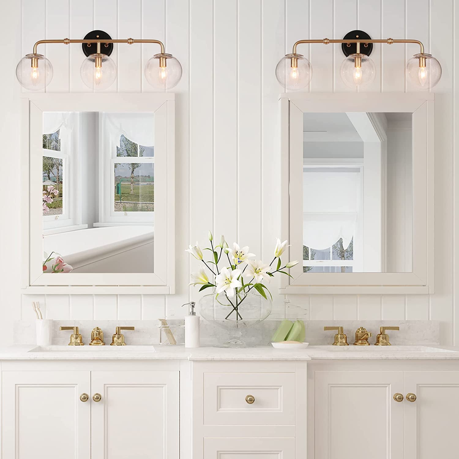 3 Light Seeded Glass Shade. Glass shade bathroom light. Gold Bronze glass shade light