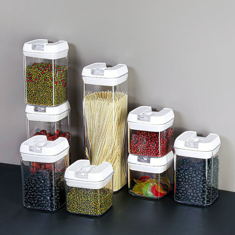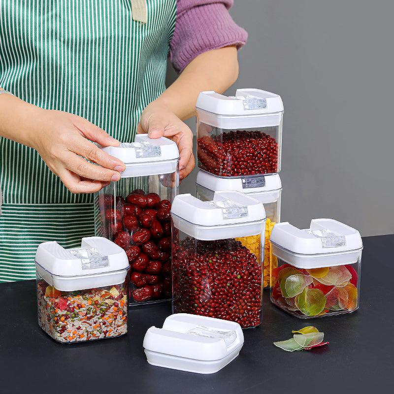 Air-Tight to keep food dry and fresh----With a special sealing mechanism, you can open or close our plastic containers safely by using only two fingers. Simply flip the ring to open or flip the ring down to lock and seal.