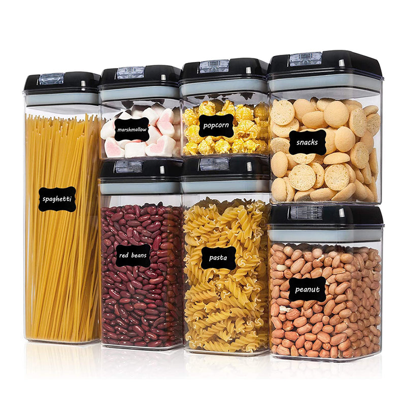 One Set Include 7 Pieces Containers----1 Tall Container (1.7qt ), 2 Medium Containers (1.1qt ), 2 Small Containers (0.7qt), 2 Mini Containers (0.5qt). Perfect for storing flour, sugar, rice, grain, nuts, beans, snacks, pasta, coffee and tea!