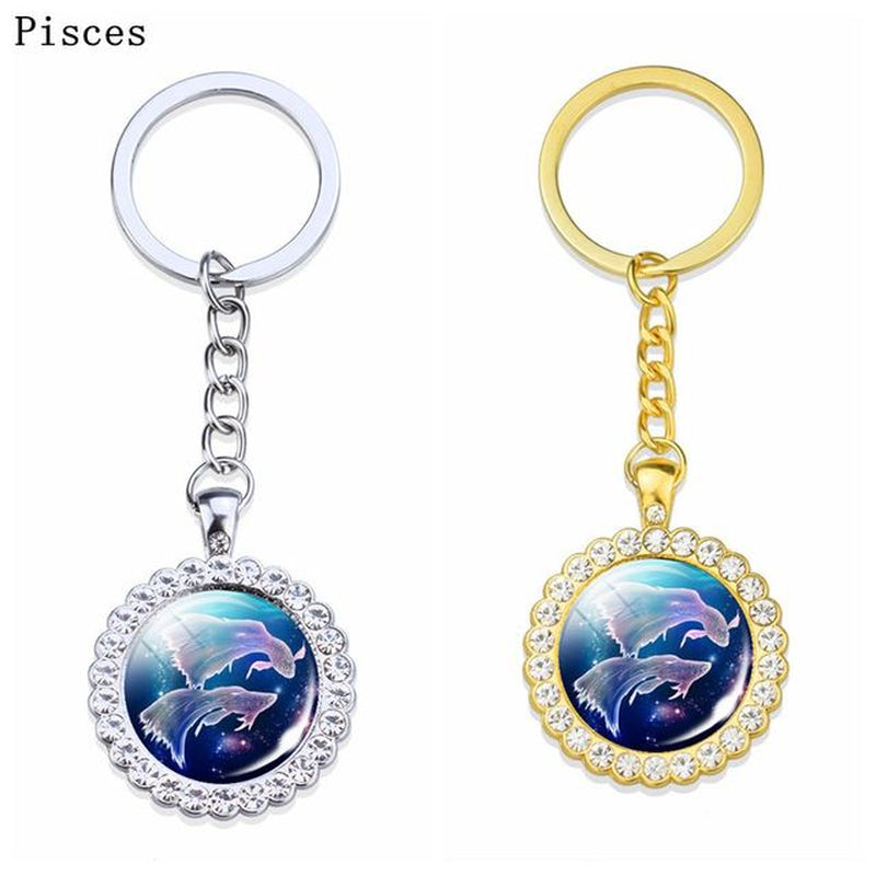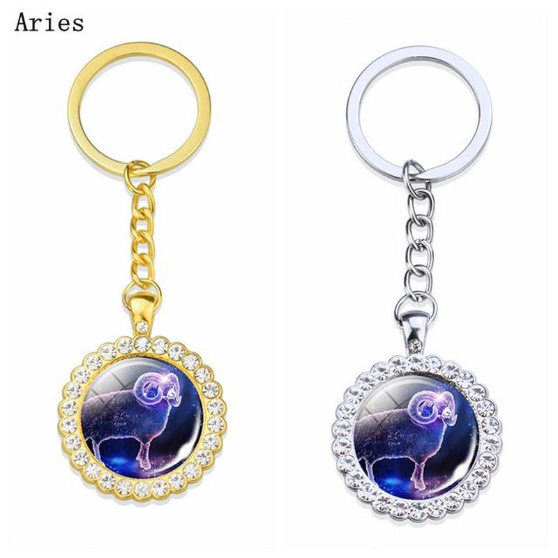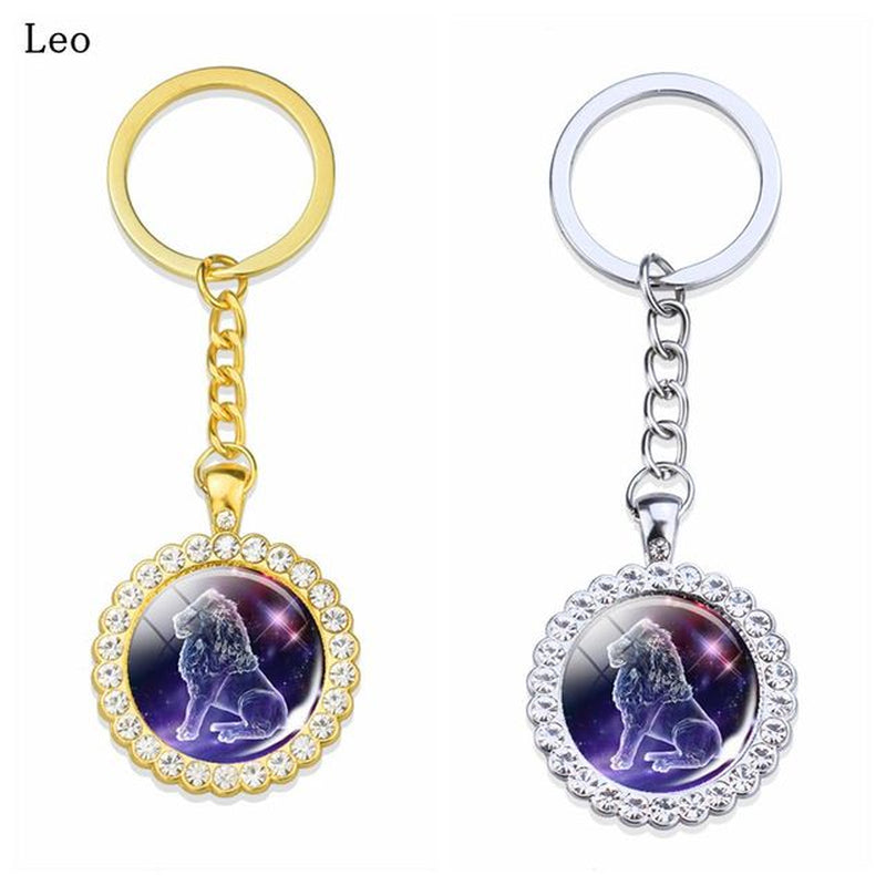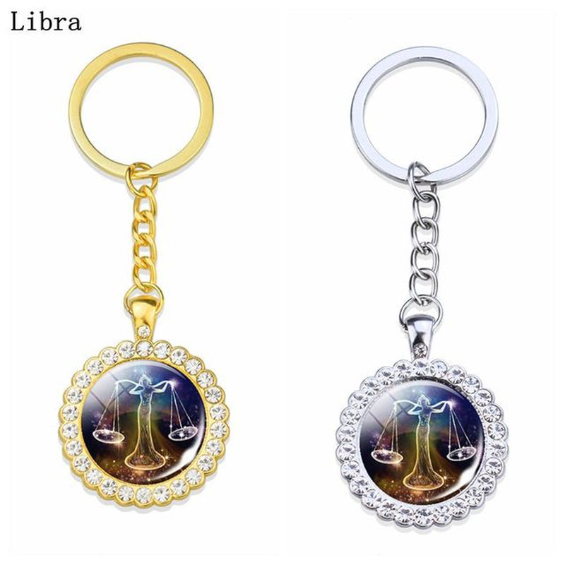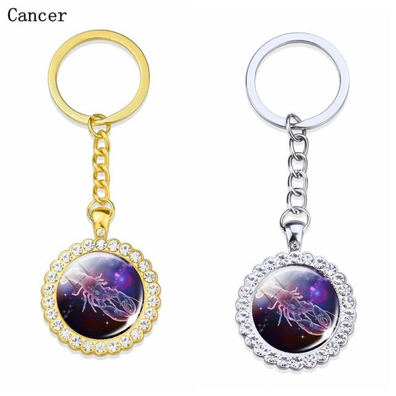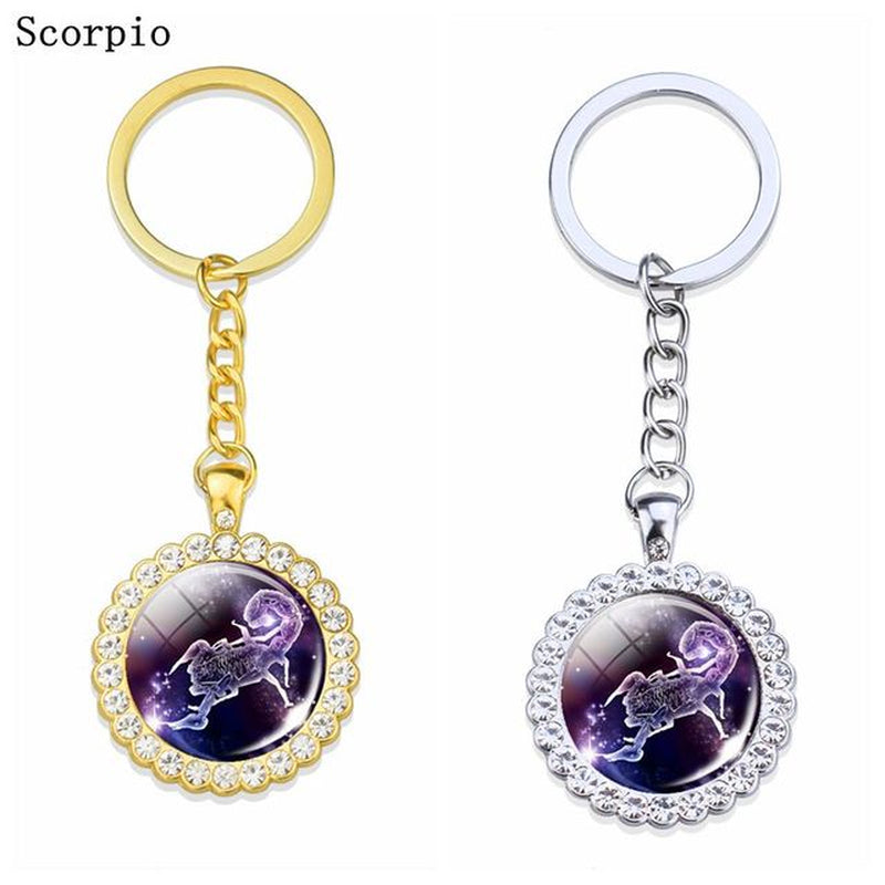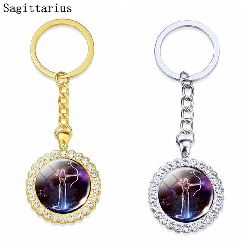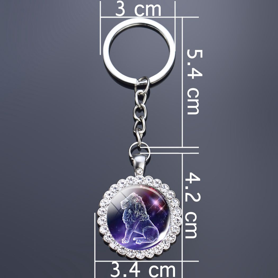 Constellation Glass Rhinestone Keychain Pendant Silver/Gold Plated Zodiac
