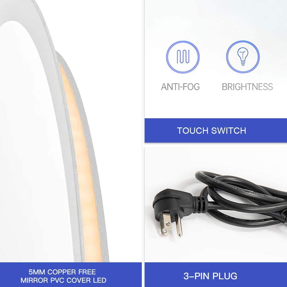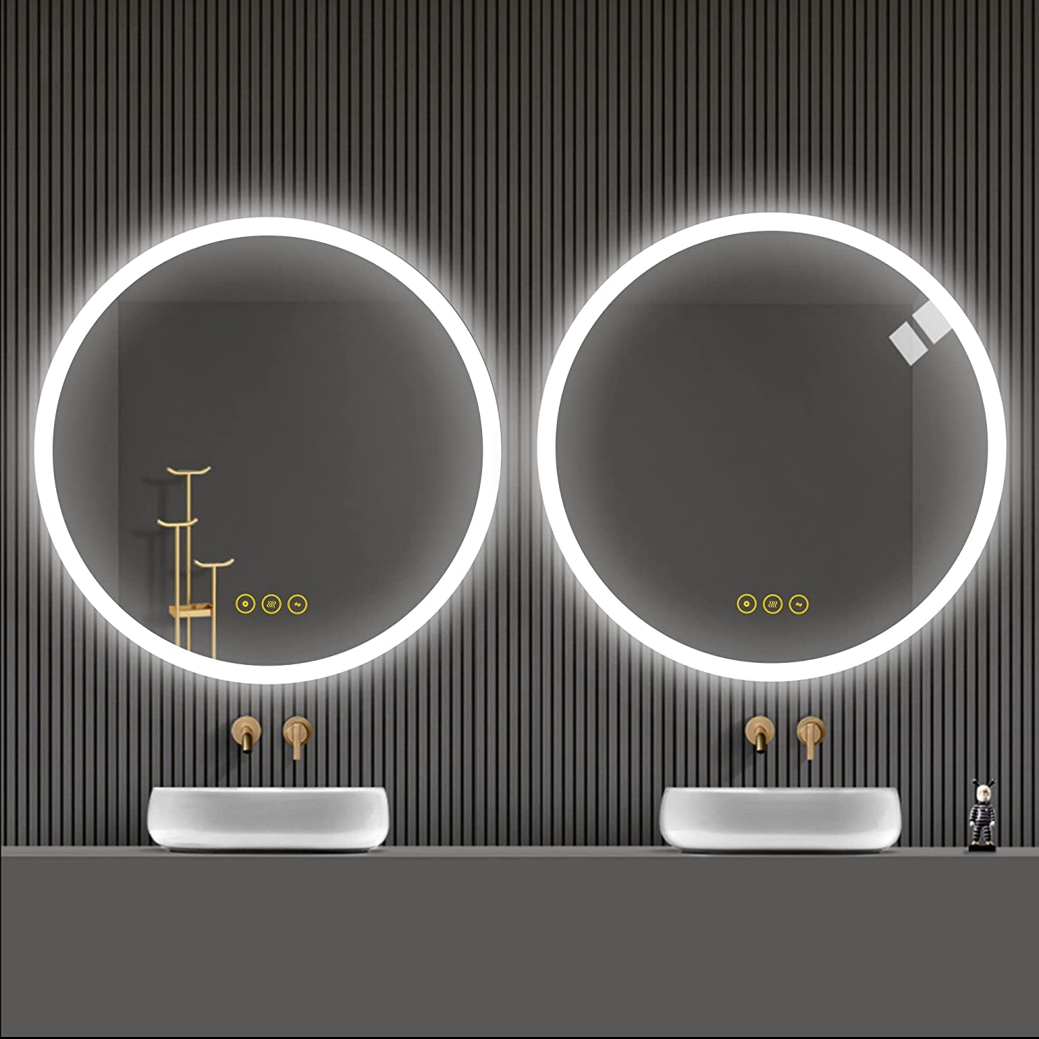 Dimmable 24 Inch round Circle Backlit Illuminated Anti-Fog 3 LED Color mirror