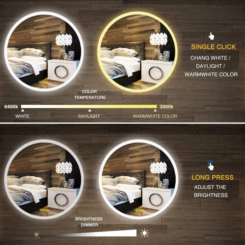 - [Memory Dimmable Button] Holding a touching light button to adjust your wanted brightness, full range dimmable, the led bathroom mirror will memory your last time use.