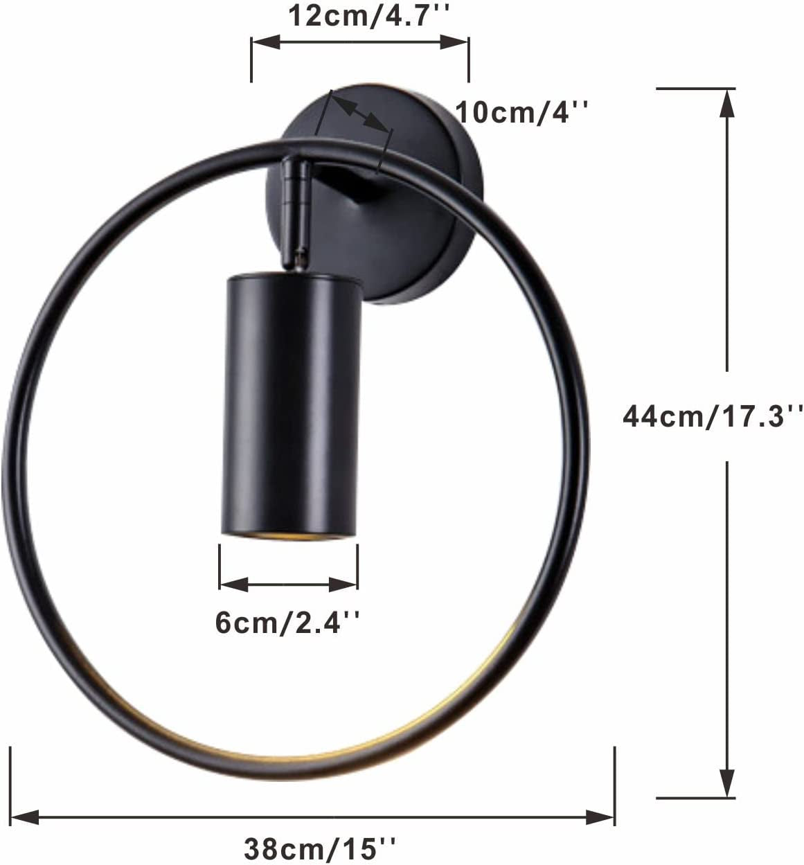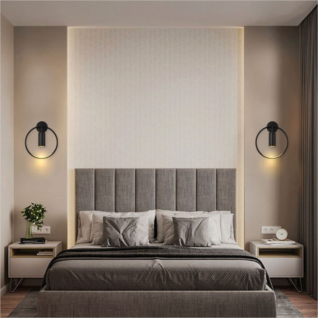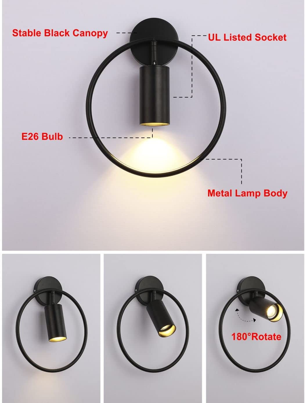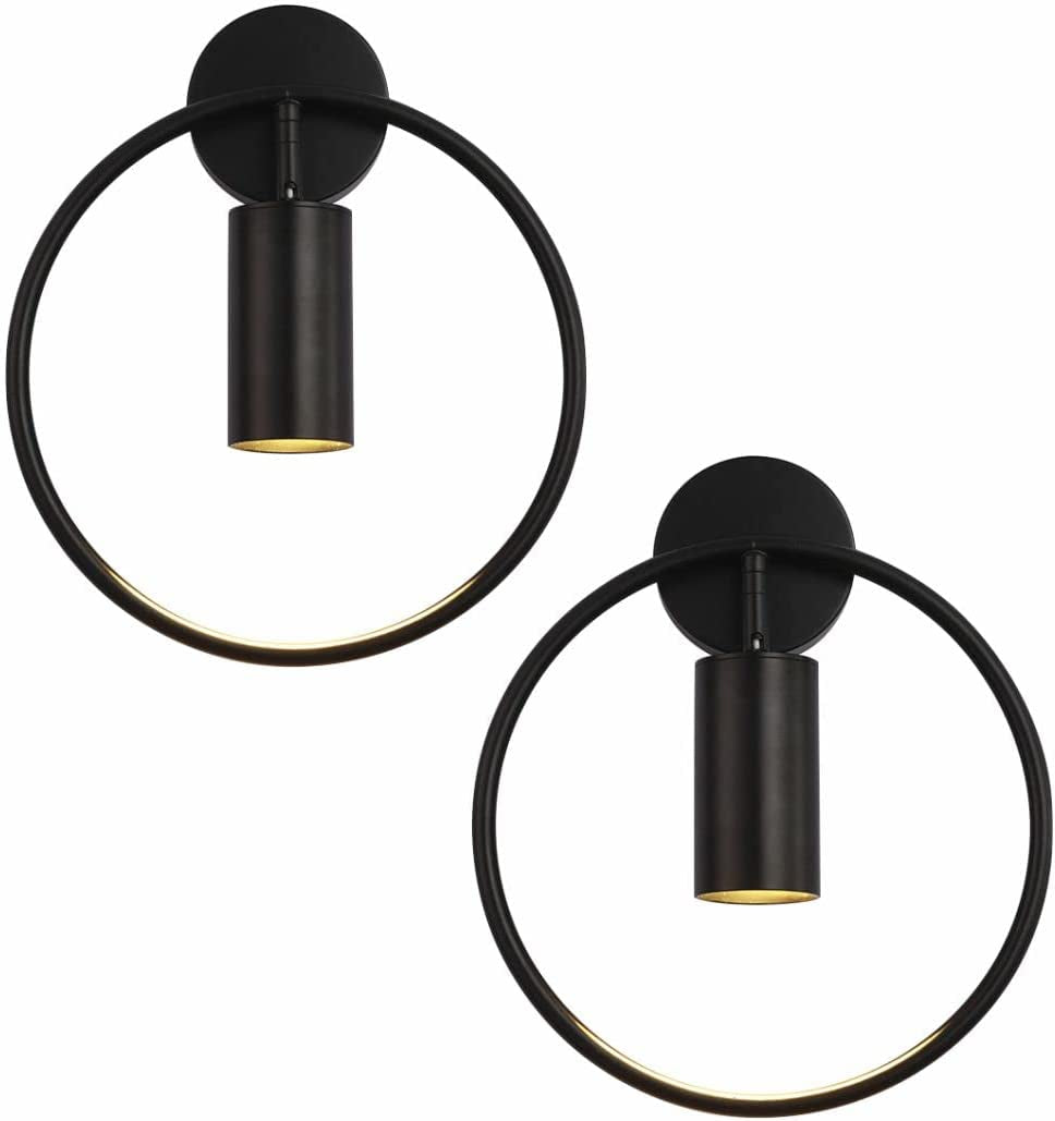 Lighting Mid Century Wall Sconces Circular Bedroom Light Fixture (Black, 2 Pack)
