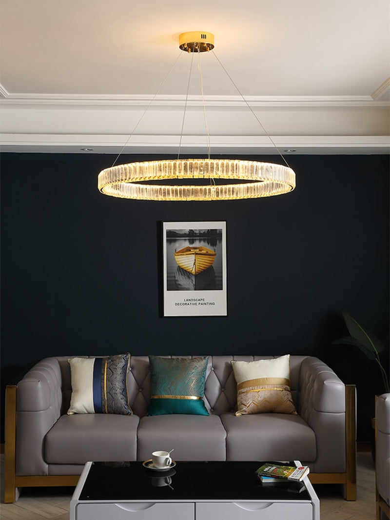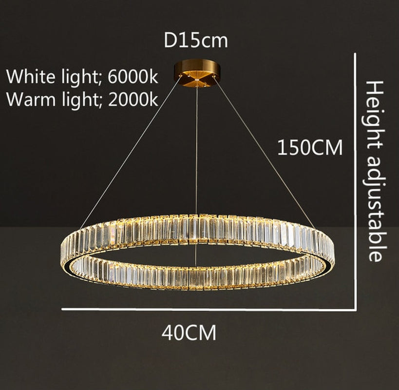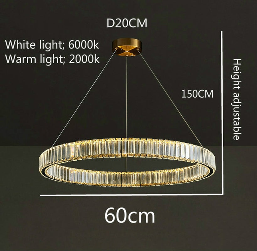 Featuring a single ring design, this chandelier exudes contemporary charm and sophistication. The crystal LED lights beautifully illuminate the surroundings, casting a warm and inviting glow. With adjustable hanging heights, you can customize the chandelier to fit your space perfectly.