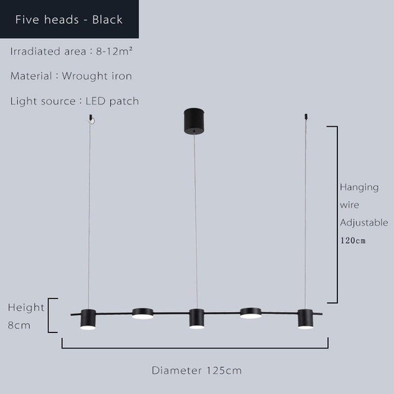 The remote control dimming has warm white light, cool white light and neutral light, you can change the color and dim the brightness through the remote control;lb Size: 3 heads 70cm long 5 heads 120cm in length 6 heads 140cm in length Adjustable height: 0.6m Voltage: 220V/110V Scope of application: living room, bedroom, hall, dining room