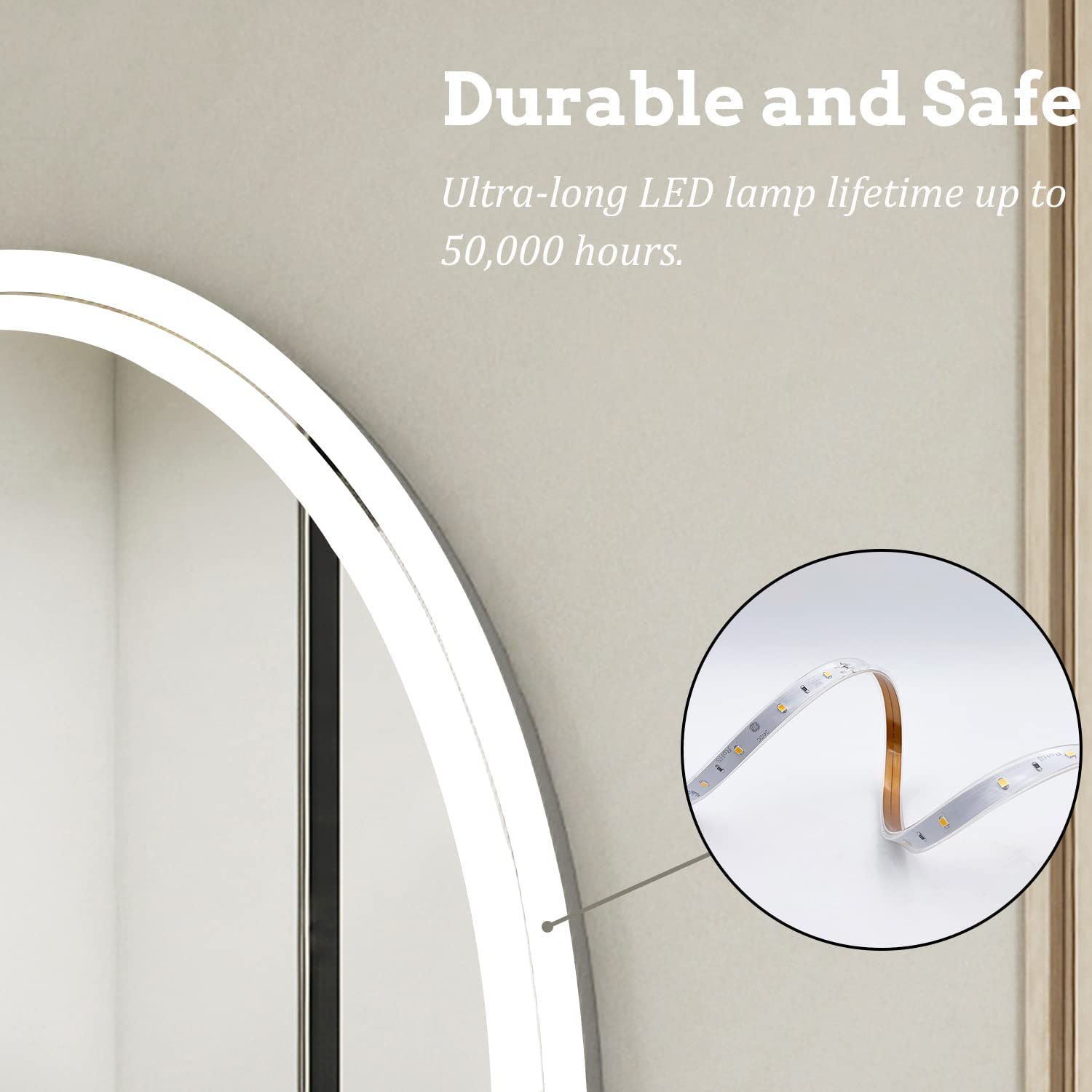 Crafted from 4mm copper-free silver mirror, our design prioritizes safety and the environment. With shatter-proof technology and an impressive LED lifespan of up to 50,000 hours, this mirror is built to last over 27 years of use.