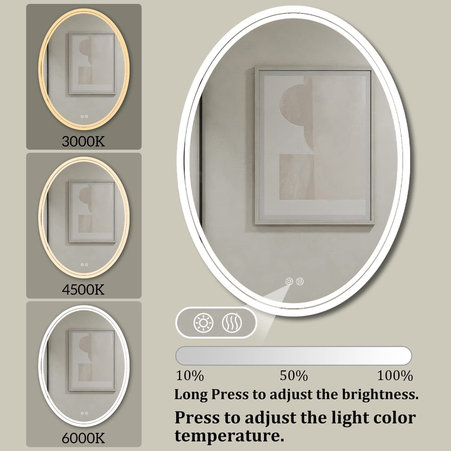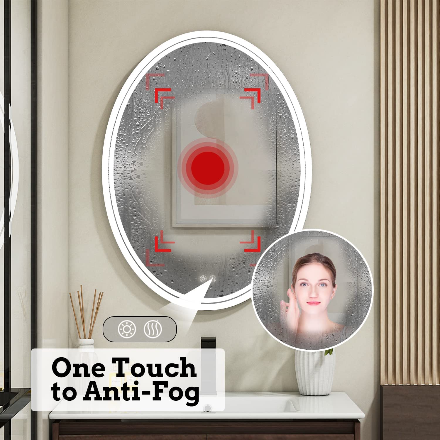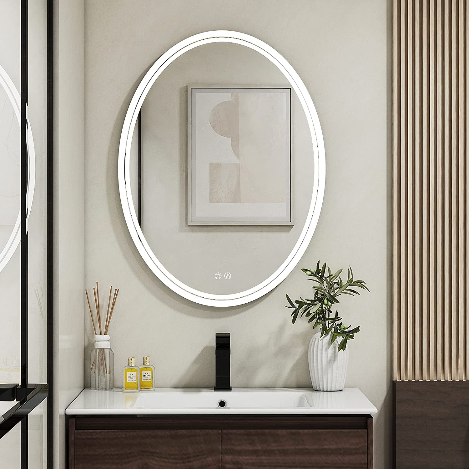 Oval LED Anti-Fog 3 Colors Dimmable Touch Switch Wall Mounted mirror