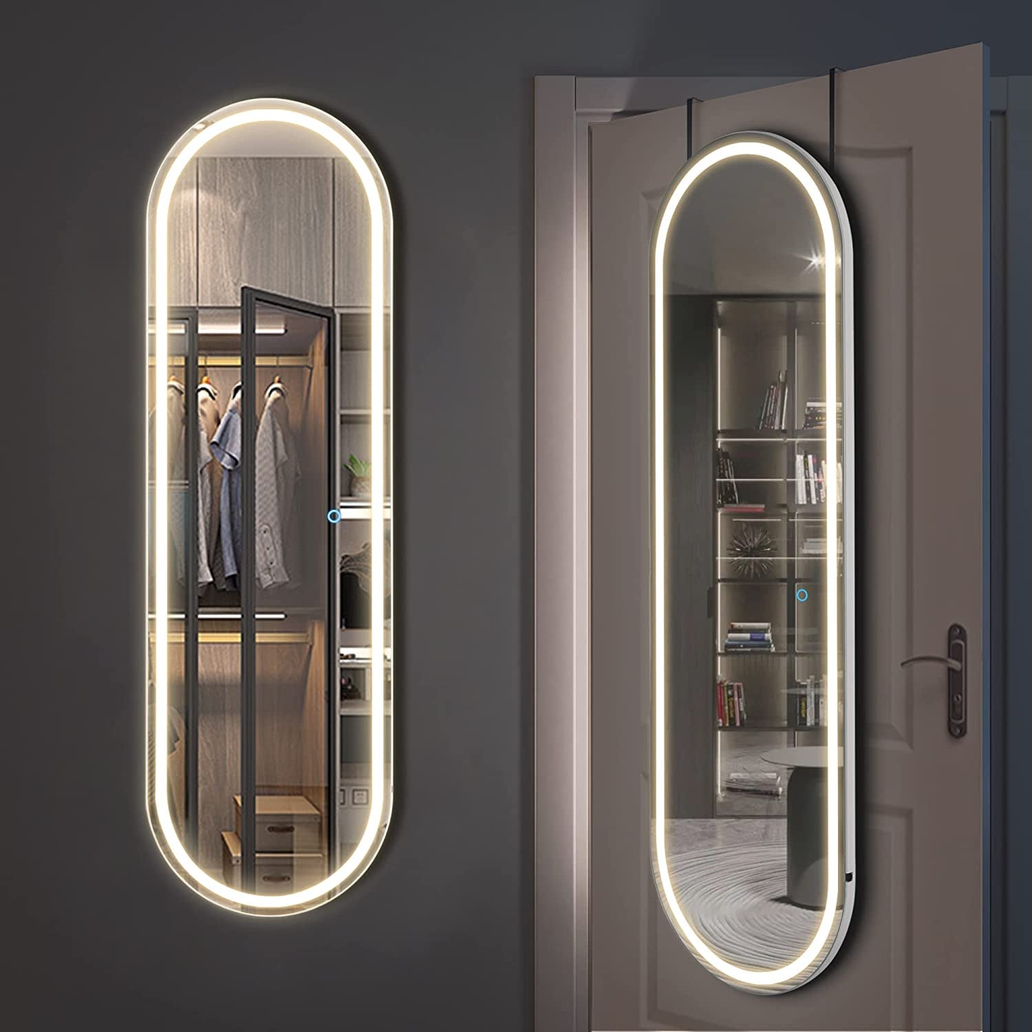 Smart Touch Oval LED Lighted, Wall Mounted/Over the Door Arched, Hanging Mirror