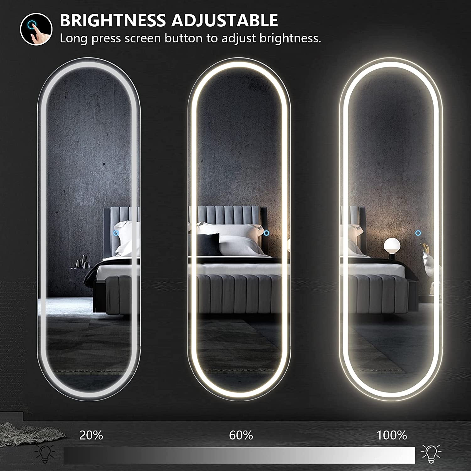 - 【3 COLOR MODE & ADJUSTABLE BRIGHTNESS】The arched mirror is designed with 3 light color modes to satisfy your different needs. You can also adjust the arched mirror's brightness according to various atmospheres. Just control the screen button to achieve the effect you prefer, which is convenient and intelligent. Adopt premium led light strip, not only make it much brighter but also is energy-saving and long term.