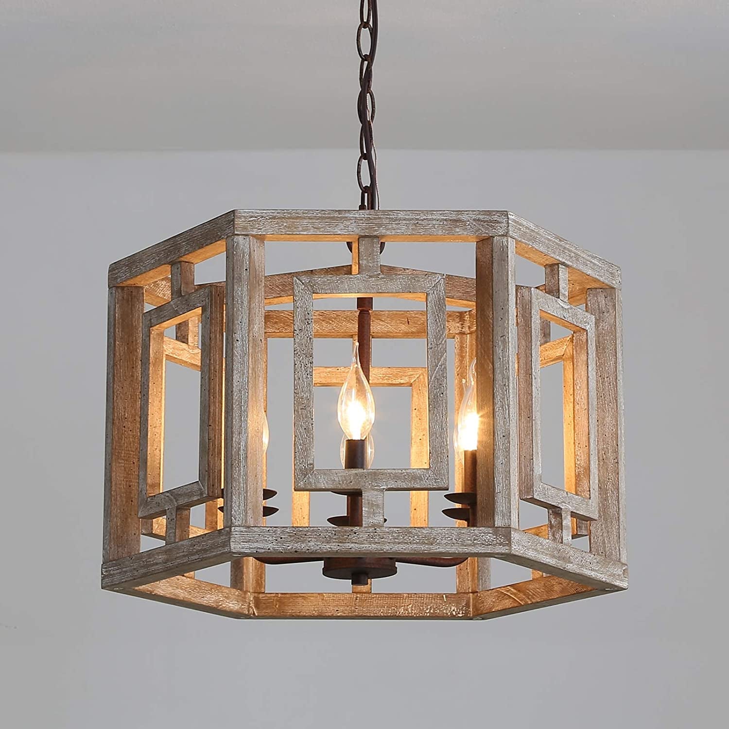 6- Light Wooden Chandeliers Vintage Famrhouse Wood Chandelier Foyer Light for Home Decor Dining Room, Bedroom, Living Room, Kitchen Island, Bathrooms,Hallway